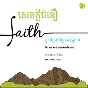 [English Below] ទ្រង់មានព្រះបន្ទូលតបថា គឺដោយព្រោះតែអ្នករាល់គ្នាមានសេចក្តីជំនឿតិចពេកប៉ុណ្ណោះ ដ្បិតខ្ញុំប្រាប់ជាប្រាកដថា បើមានសេចក្តីជំនឿ ដូចគ្រាប់ពូជ១យ៉ាងល្អិត នោះអ្នករាល់គ្នាអាចនឹងនិយាយទៅភ្នំនេះថា ចូររើចេញពីទីនេះទៅទីនោះចុះ នោះនឹងបានដូច្នោះហើយ ក៏គ្មានការអ្វីដែលអ្នករាល់គ្នាធ្វើមិនកើតនោះទេ — ម៉ាថាយ ១៧:២០