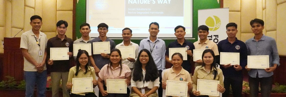 [English Below] វគ្គបណ្ដុះបណ្ដាលគ្រូបង្គោលស្តីអំពីការធ្វើកសិកម្មតាមបែបធម្មជាតិ (FNW) អង្គការ អេហ្វ អេក កម្ពុជា បានទទួលជោគជ័យនូវវគ្គបណ្តុះបណ្តាលគ្រូបង្គោល (ToT) រយៈពេល ២ថ្ងៃ លើការអនុវត្តកសិកម្មតាមបែបធម្មជាតិ (FNW) ស្ថិតនៅក្រោមកម្មវិធីគម្រោងការកសាងទ្រព្យសកម្ម ឆ្ពោះទៅកាន់មាគ៌ាររីកចម្រើន នៅខេត្តសៀមរាប។ វគ្គបណ្តុះបណ្តាលនេះបានរួមបញ្ចូលមន្ត្រីកសិកម្មឃុំ និងបុគ្គលិករបស់អង្គការ អេហ្វ អេក (អ្នកសម្របសម្រួលការអភិវឌ្ឍ) ដោយផ្តល់ឱ្យពួកគេនូវចំណេះដឹងអនុវត្ត និងជំនាញសម្របសម្រួល ស្តីពីការអនុវត្តកសិកម្មតាមបែបធម្មជាតិ រួមមានការធ្វើកសិកម្មអភិរក្ស កសិរុក្ខកម្ម ជីសរីរាង្គ ថ្នាំបណ្តេញសត្វល្អិតផ្សំពីរុក្ខជាតិ និងជីវសាស្ត្រ ដើម្បីស្តារប្រព័ន្ធអេកូឡូស៊ីដែលរងផលប៉ះពាល់ និងផលិតអាហារដែលមានសុវត្ថិភាព និងមានសុខភាពល្អ។ វគ្គបណ្តុះបណ្តាលនេះធ្វើឡើងក្នុងគោលបំណង ដើម្បីពង្រឹងសមត្ថភាពរបស់ពួកគេក្នុងការផ្ទេរចំណេះដឹងទៅកាន់កសិករ ការពារធនធានធម្មជាតិ និងជំរុញជីវភាពរស់នៅឱ្យប្រសើរឡើងនៅក្នុងសហគមន៍របស់ពួកគេ។ Training of Trainers on Farming Nature’s Way FH Cambodia successfully conducted a 2-days Training of Trainers (ToT) on […]